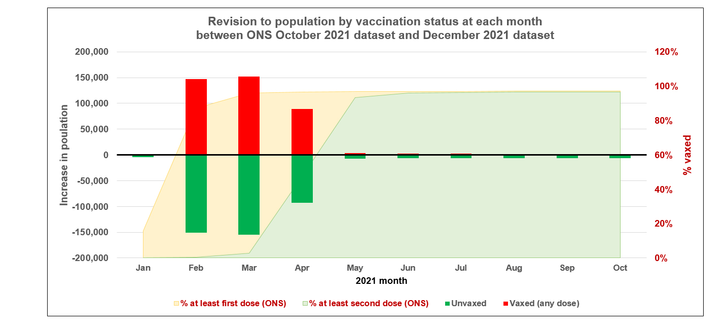 Essentially ONS are claiming that a removal of 76,068 people across all age groups and all vaccination statuses (so let’s wild guess at the removal of 1,000 unvaccinated 70-79 age group in March 2021) can mainly explain a 150,000 reallocation from unvaccinated to vaccinated between the to 31st October 2021 and to 31st December 2021 datasets.