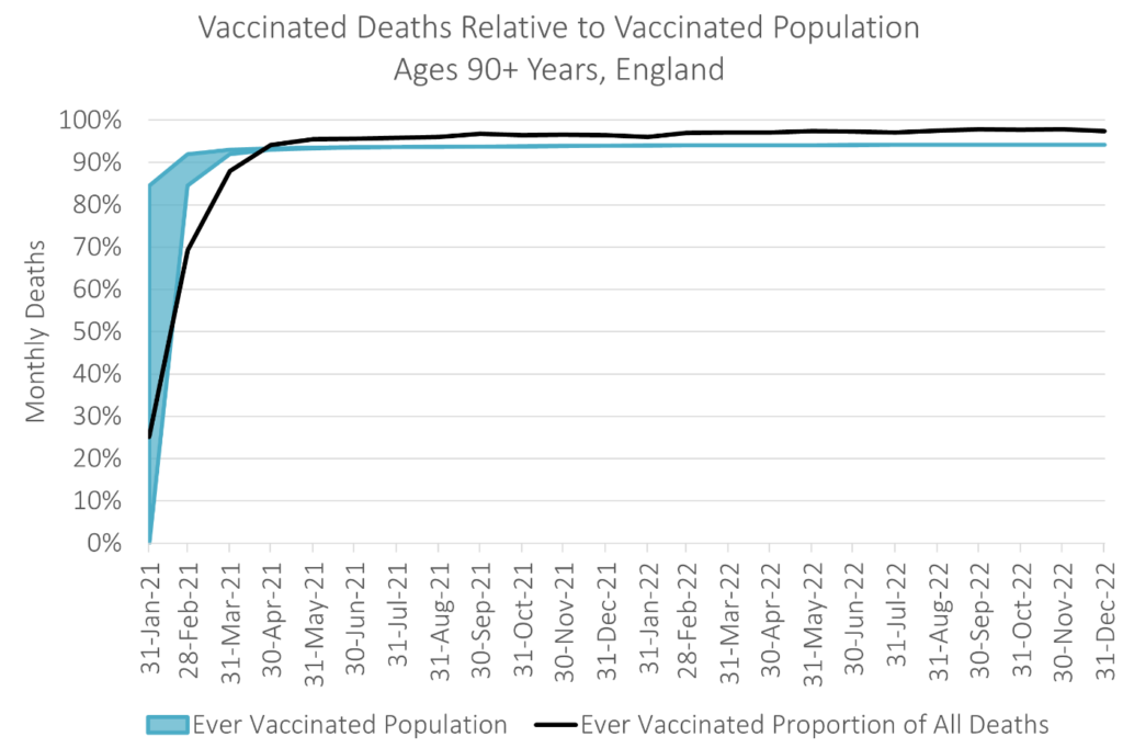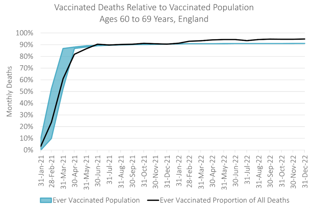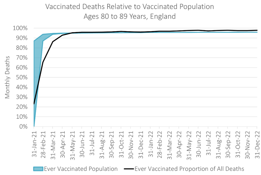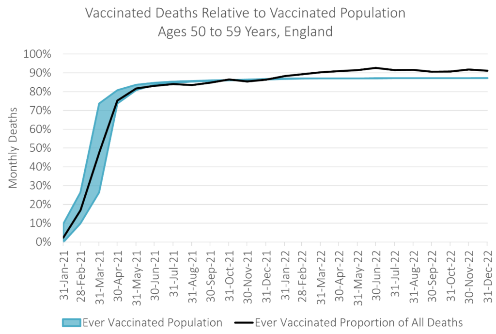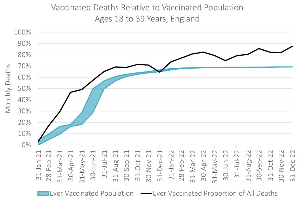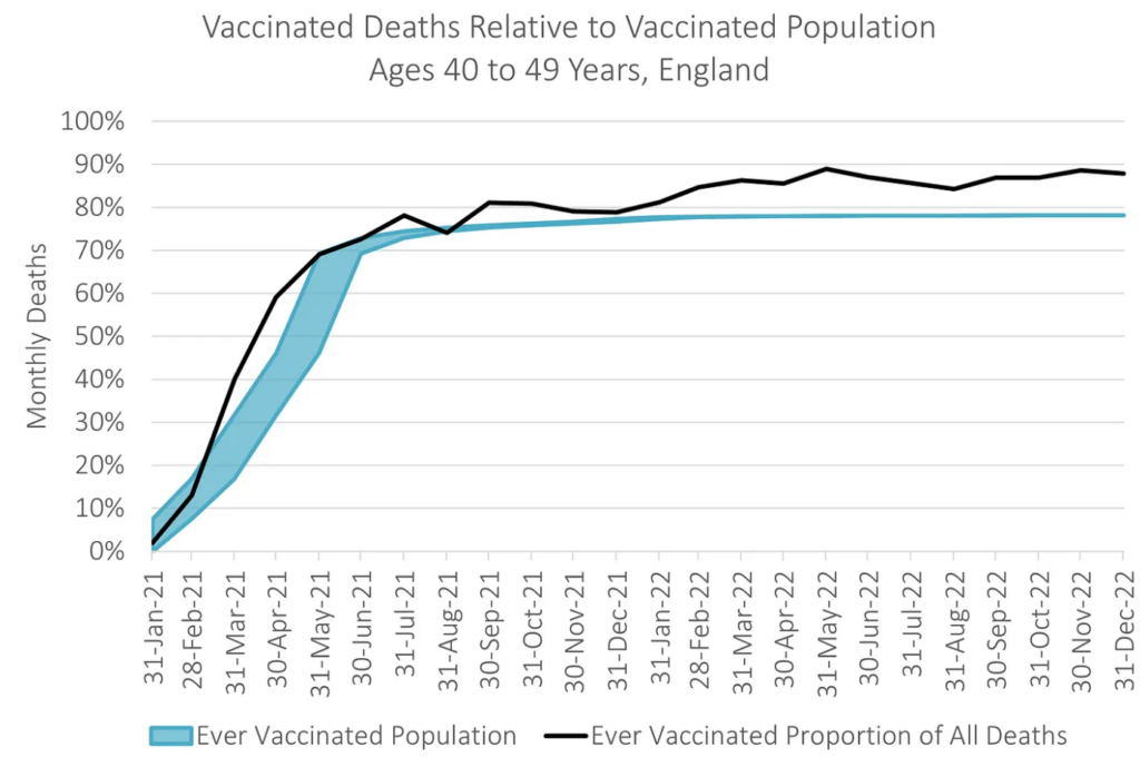 The new official data on deaths by vaccination status in England were released on Tuesday by the ONS and they show the vaccinated are over-represented in all-cause mortality in all age groups for most of 2021 and all of 2022.