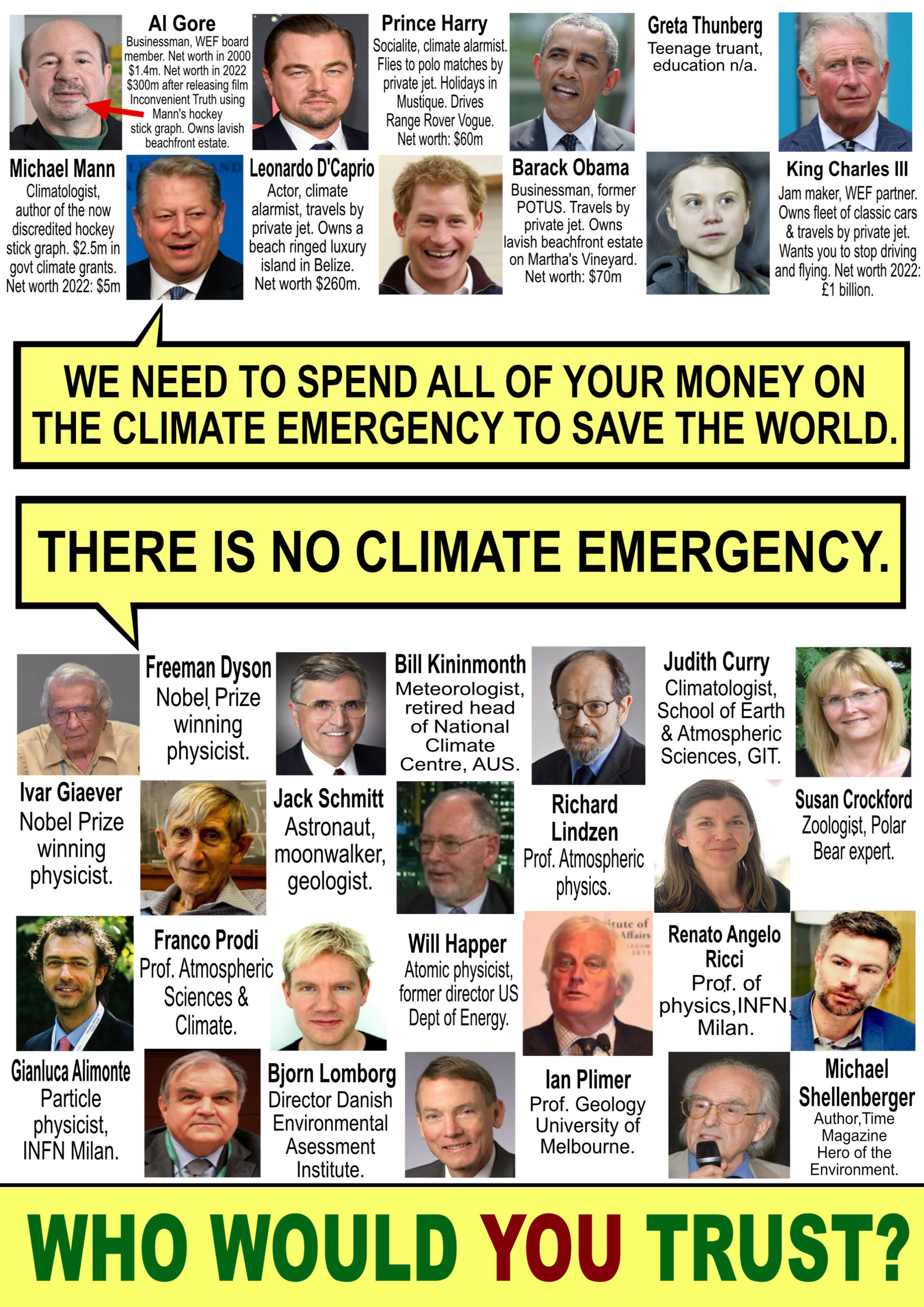 There is one huge flaw in Mr Winton’s argument and that is that he appears to accept that the Wannabe Powers That Be believe in global warming, the next ice age or climate change or whatever is dish of the day, except…they don’t.