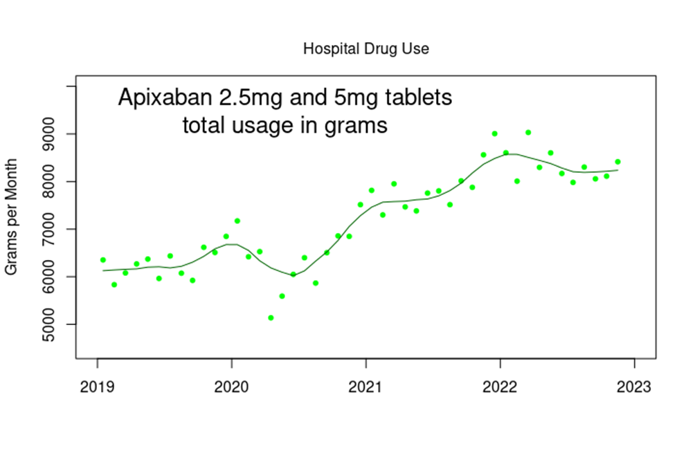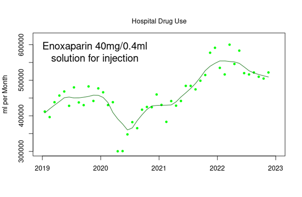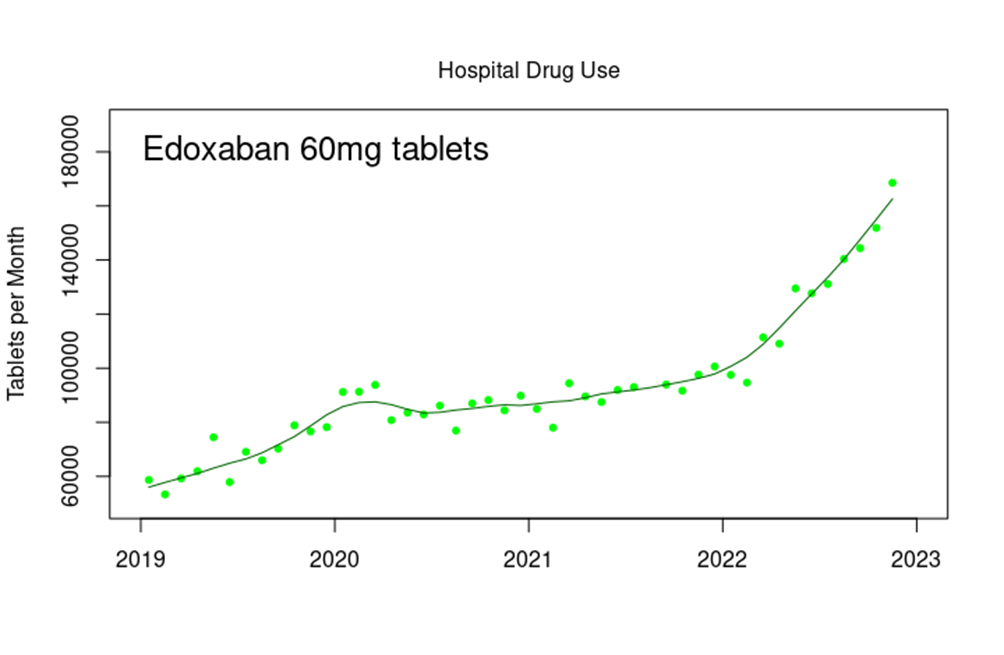 There has been a similar increase in the use of other anticoagulants, such as enoxaparin and edoxaban in a hospital setting.