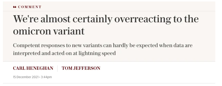 However, by December 2021, the models were overly pessimistic and far from reality. So on December 15th, we wrote ‘We’re almost certainly overreacting’ in the Telegraph.