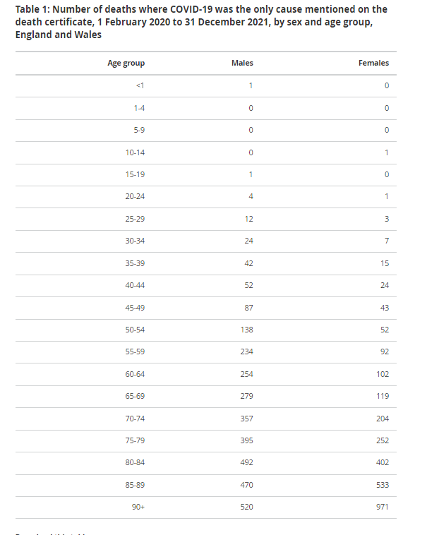 ONS figures, Feb 2020 to Dec 2021, for deaths FROM Covid (not the meaningless “with Covid” figure, which was used for anyone dying from whatever if they tested positive with a test not designed to do what they wanted it and made it do).