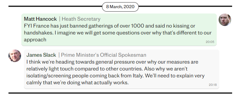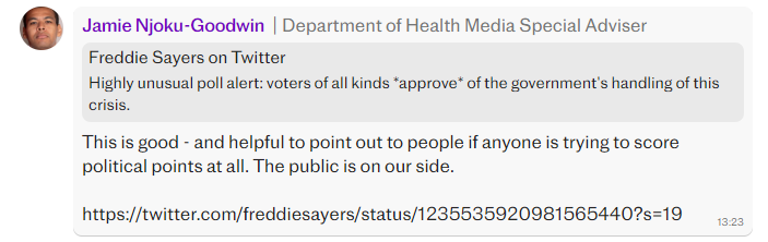 A point of note — Without this leak it I can’t imagine that the Covid inquiry would have had access to these discussions. I imagine that even now they won’t have access to similar messages from others involved in decision making at that time.
