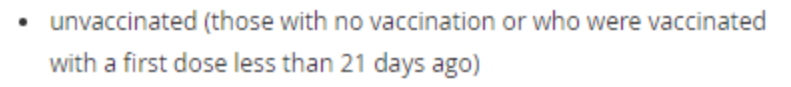 The unvaccinated group includes anyone who had a first dose less than 21 days ago. So for three weeks you count as unvaccinated even though you clearly are not. And the ONS are scratching their heads as to why the figures don’t add up!