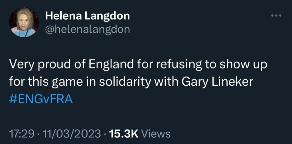 Or even literally…? That picture from Vietnam times was powerful. Imagine Lineker going for that ..