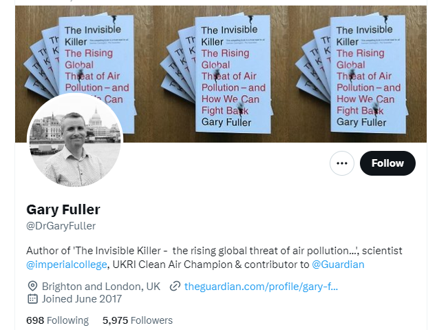 Gary Fuller; Imperial college and contributor to the Guardian. What could go wrong!