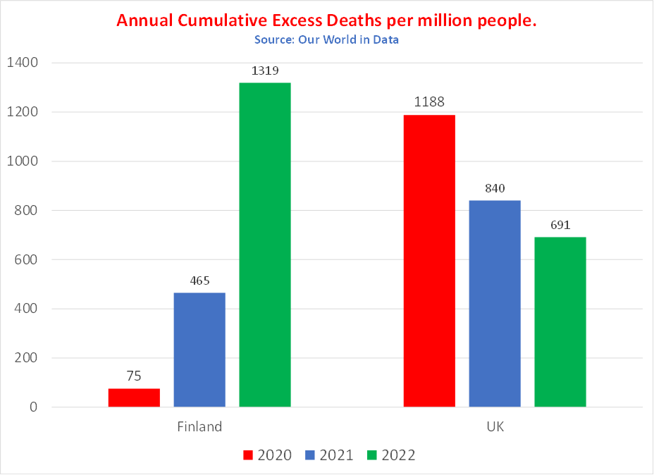 Excess Deaths Higher in Finland in 2022 than in the U.K. in ‘Pandemic Year’ of 2020