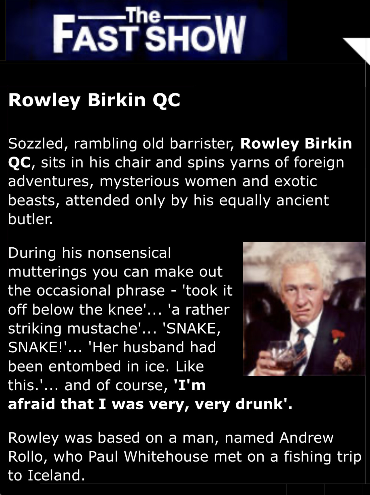 That’s good Hux’ but my reply to Roy was a catchphrase that Rowley Birkin QC always used at the end of his monologue – Another character from the brilliant Fast Show.