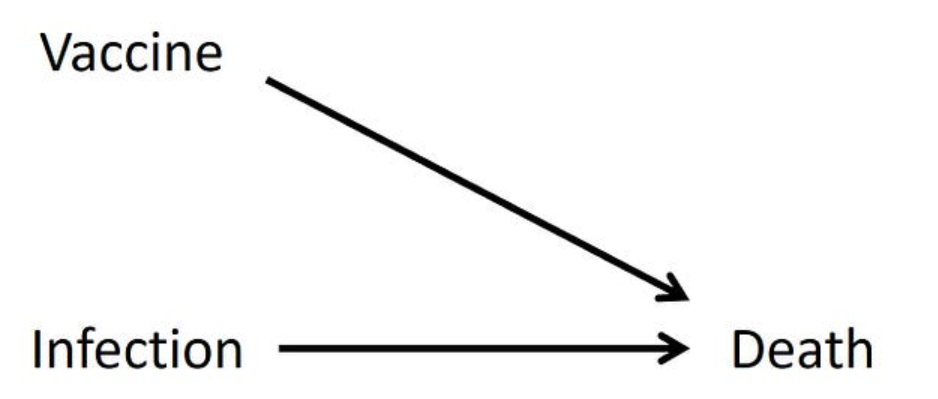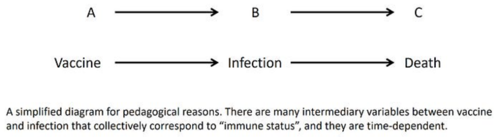 What if A does not affect B? What if a Covid vaccine does not reduce the risk of infection? Then it cannot reduce the risk of death through this mechanism. The causal chain does not exist. A link is broken.