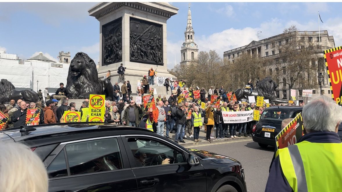 Protesters Demonstrating Against Sadiq Khan’s Ulez Expansion Scheme Fill Trafalgar Square