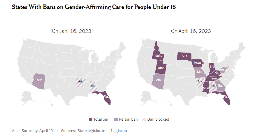 Florida’s state medical boards also issued a rule last year prohibiting doctors from offering gender-affirming care to new patients under 18. Though not a law, the decree has the same effect of ending care.