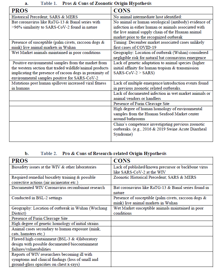 “New information, made publicly available and independently verifiable, could change this assessment.“However, the hypothesis of a natural zoonotic origin no longer deserves the benefit of the doubt, or the presumption of accuracy.”
