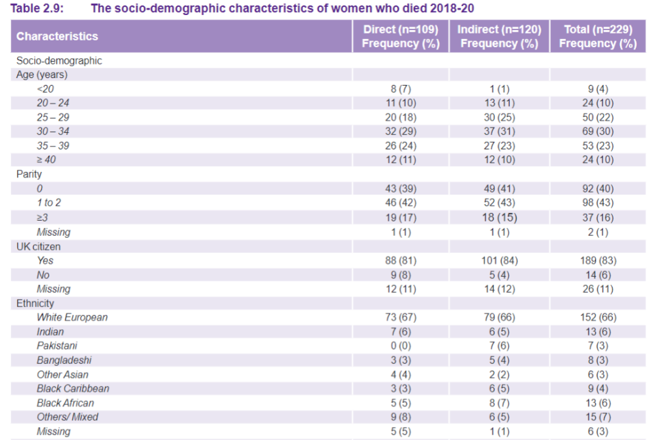 So, for example, Covid was an indirect cause of death because it happened more widely and not because of pregnancy.