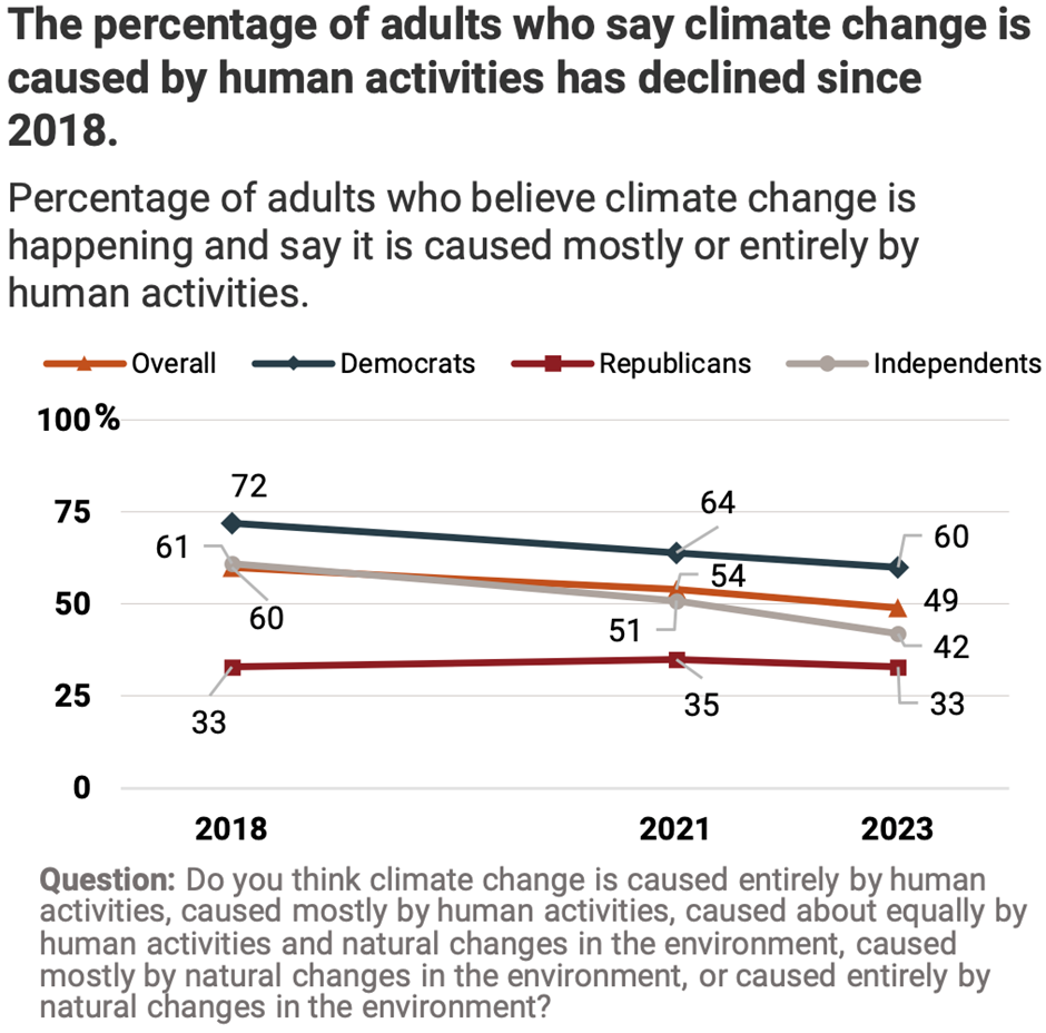 Interestingly, the recent overall fall in support for human-caused climate change in the U.S. is due to Democrats and Independents.