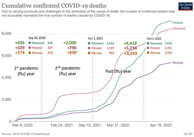 Between October 2021 and September 2022, the past flu-year, all-cause mortality in Denmark exceeded the expectation by about 10%. Even if Covid deaths accounted for only 7% excess mortality, that’s about twice the excess in the previous 12-month period.