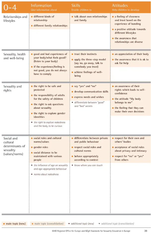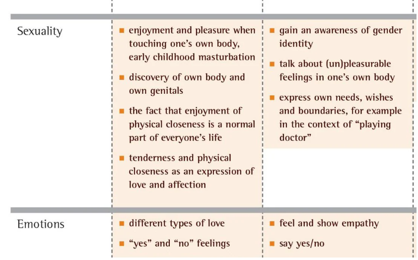 These topics are described as the “minimal standards that need to be covered by sexuality education”.