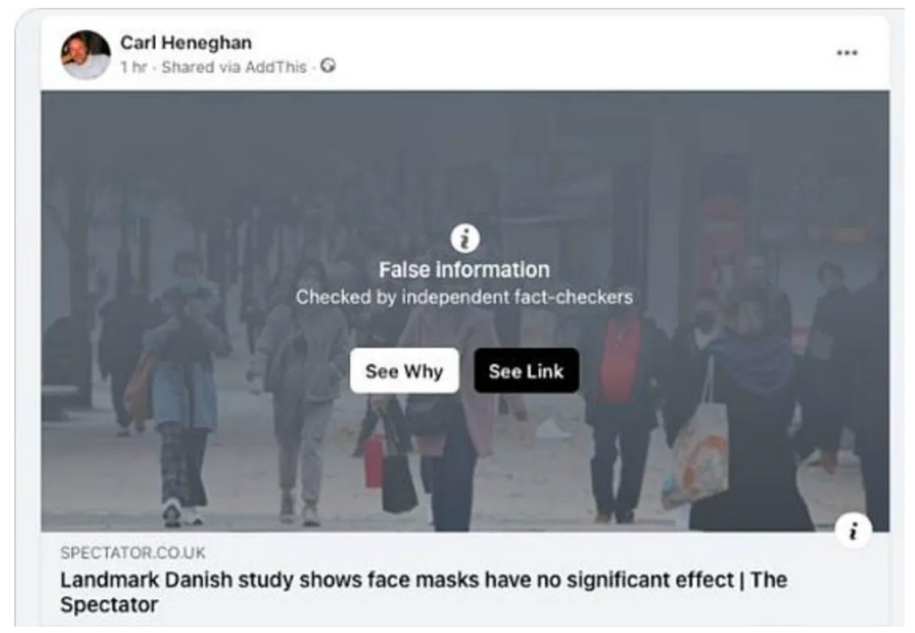 In January 2021, a website called ‘Anti-Virus: The Covid-19 FAQ’ was created by a group unknown to us, including a sitting MP. Its sole purpose was to debunk messages that disagreed with mainstream Government policies — the website list “myths” about Covid and names “sceptics”, including us. If you click on names, you will be introduced to a series of capital charges against us. We were no longer evidence-based if we questioned the evidence for policies such as the Rule of Six.