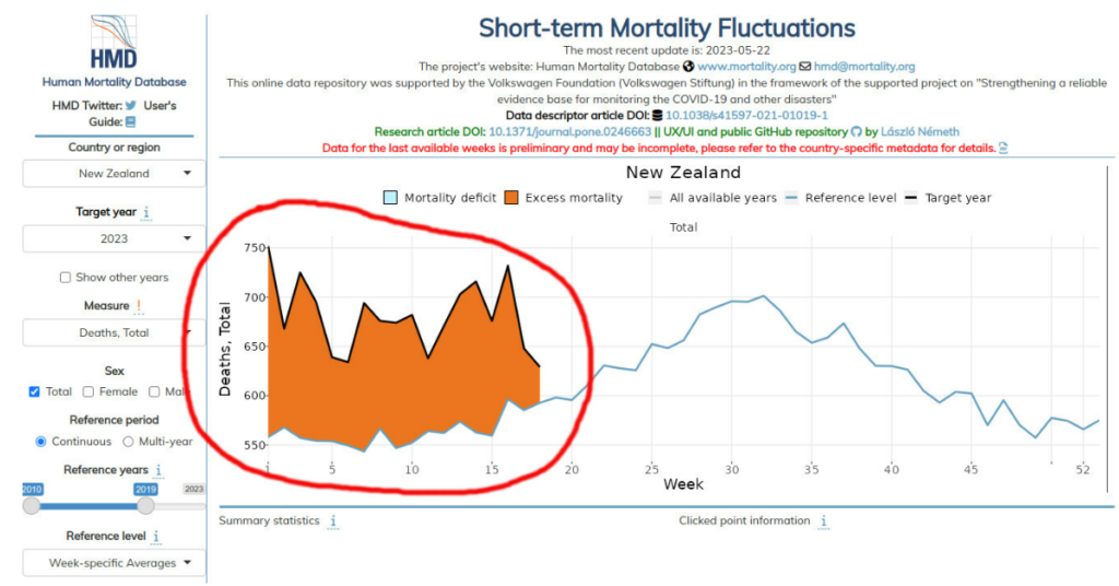 How is heavily vaccinated New Zealand doing? Take a look at the Human Mortality database. In 2023, New Zealanders are dying at a rate around 25% above average.