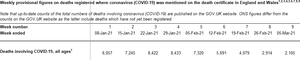 Secondly, on Substack the authors write that “In January 2021 the ONS reported that there were almost as many deaths involving flu (7,610) as there were involving COVID-19 (5,719)”. In TCW these figures are switched: “In January 2021 the ONS reported that there were almost as many deaths involving flu (5,719) as there were involving Covid-19 (7,610).” Either way, though, the ONS data supplied with the weekly deaths bulletins show at least 30,157 deaths with Covid in England and Wales in January 2021, so I am unclear on the source of the much lower figures in the articles.
