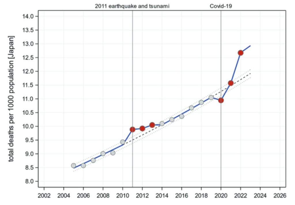 Is there anyone in the RKI who worries that German intensive care units suddenly reported a 76% increase in embolic strokes in December, as hospital data of the billing portal Inek show? Or why Japan, which [Christian] Drosten praised as an “exemplary” country, saw such an outrageously high excess mortality in 2022 – more than twice as much as in the tsunami year of 2011?