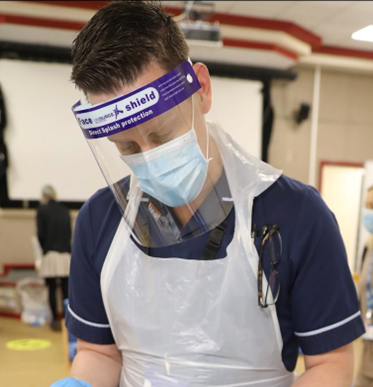 Should we be surprised that, even when an adjacent trust takes a sensible and relaxed view of masking, ESNEFT ignores directives coming from the very top of the management tree and deploys a stronger message about masking? Not really. As a previous Smile Free investigation into ESNEFT revealed, the fearful and authoritarian inclinations of ESNEFT management have been a feature of its IPC protocols. The man behind the mask, so to speak, is Chief Nurse and Director of IPC Dr. Giles Thorpe, pictured below in his mask and visor, and a committed devotee of covering oneâs face.