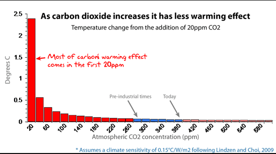 Ask him also if he is aware that any warming propensity CO2 may have is almost all played out.