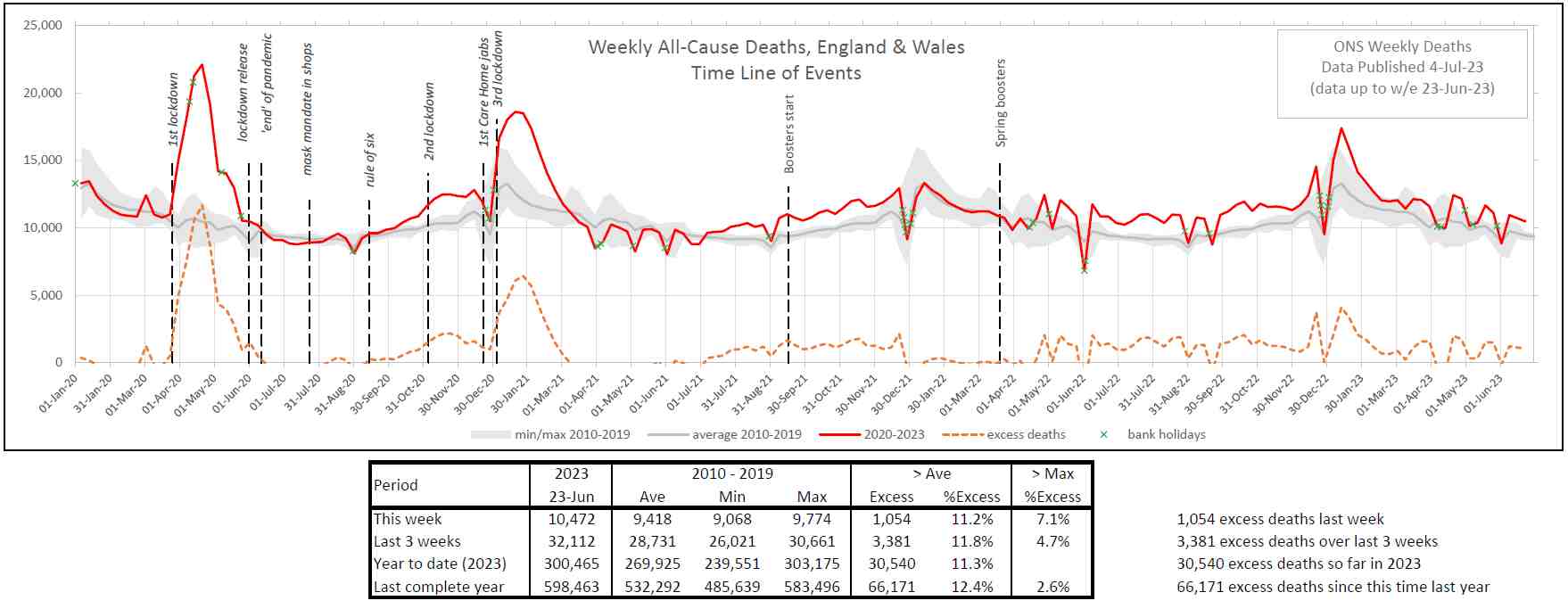 Yes, this agrees with my sums. In addition, my sums show that this year’s excess deaths exceed the maximum of 2010-2019 whereas the previous two years only exceeded the average