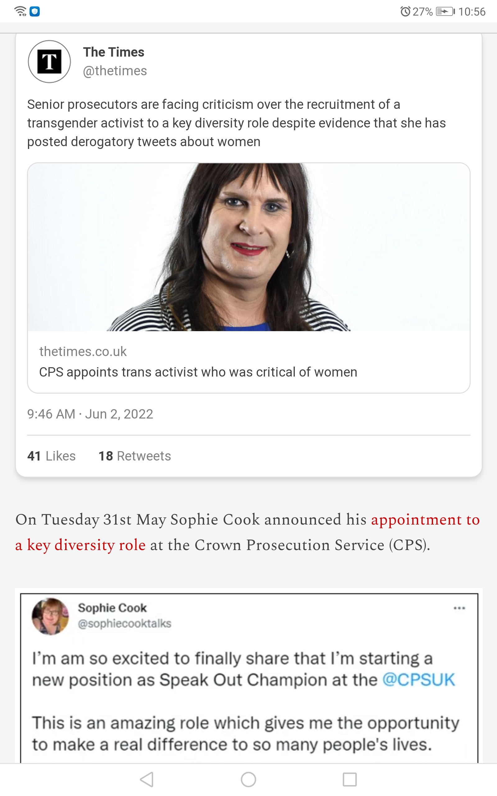 Stop Press 2: Maya Forstater, who last week won more than £100,000 in compensation from a think-tank that dropped her over her view that people cannot change their biological sex, said the new guidelines showed how the CPS has been “ideologically captured“.