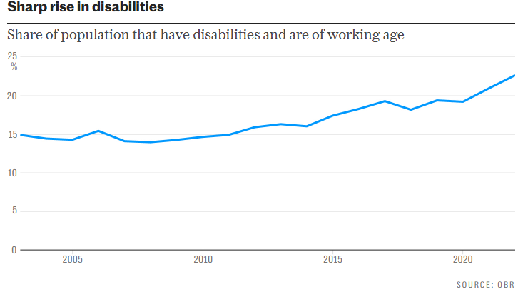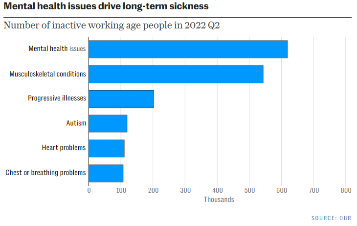 More than two million people are economically inactive – neither in work nor looking for work – because of ill health. This is an increase of 350,000 compared with pre-pandemic levels, and has dire consequences for the economy and the Government’s already-precarious finances.