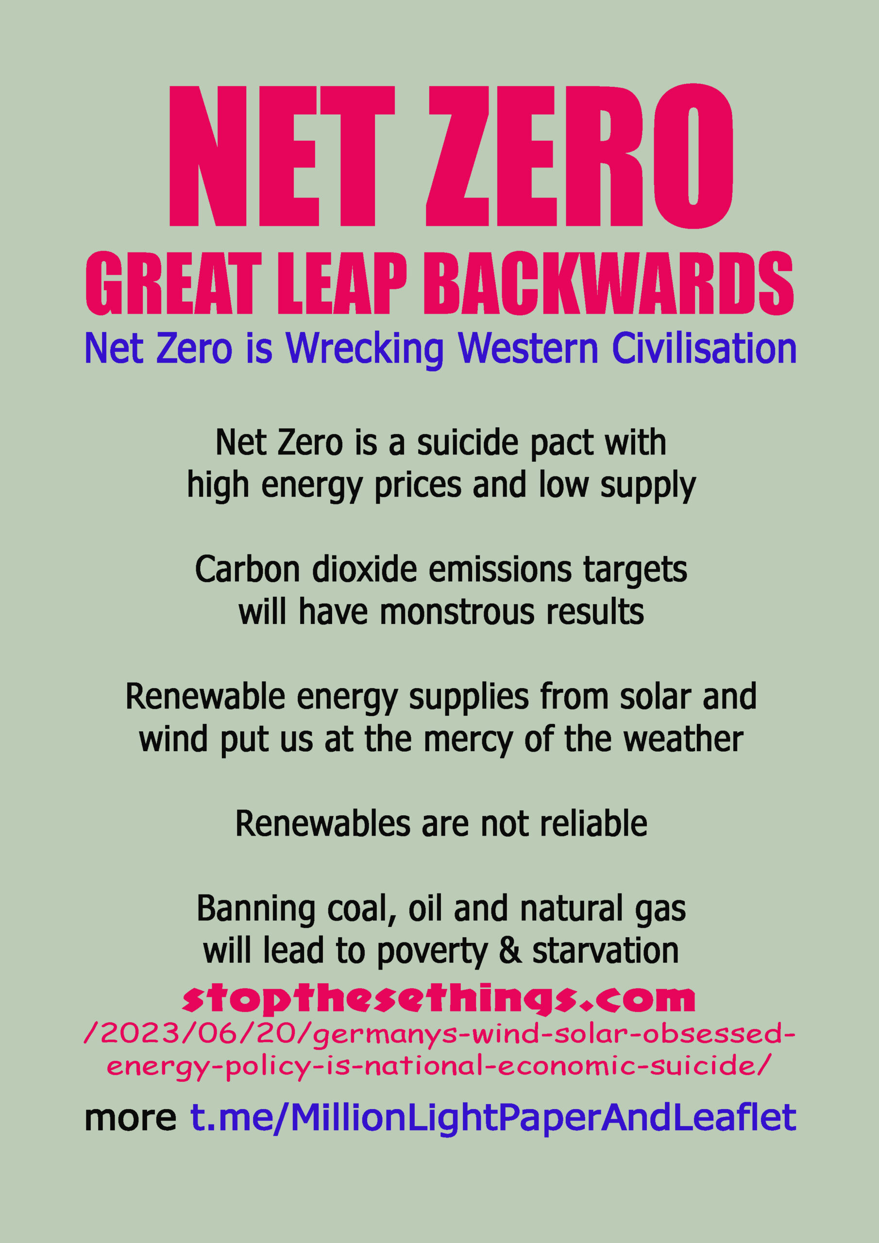 I think all the climate ‘sceptics’, I know accept that the climate changes. It changes every day, as it has for 4.5bn years. What we are less convinced by is CO2 is a ‘problem’. Its plant food, and on a geologic timescale we are living in a time of low CO2 Man made CO2 is the biggest problem of all. ‘Man Made’ if you can distinguish it is 3% of a fractional gas. The biggest source being volcano’s There is a ‘tipping point’ at which the level of CO2 is so high that global warming will accelerate until we are burned to a crisp. See 1. CO2 has been order of magnitudes higher without this happening. We, as in Mankind, can do something to stop whatever disastrous process this is. Well, I’d rather our politicians were filling the pot-holes and making sure the street were swept than trying to ‘fix’ a problem that no-one can clearly define, never mind conjure up a ‘solution’. If they have thought really hard, and the best they can come up with is electric cars and heat pumps, then I’ll take my chances. No-one on the climate side is asking what happens if we overdo… Read more »