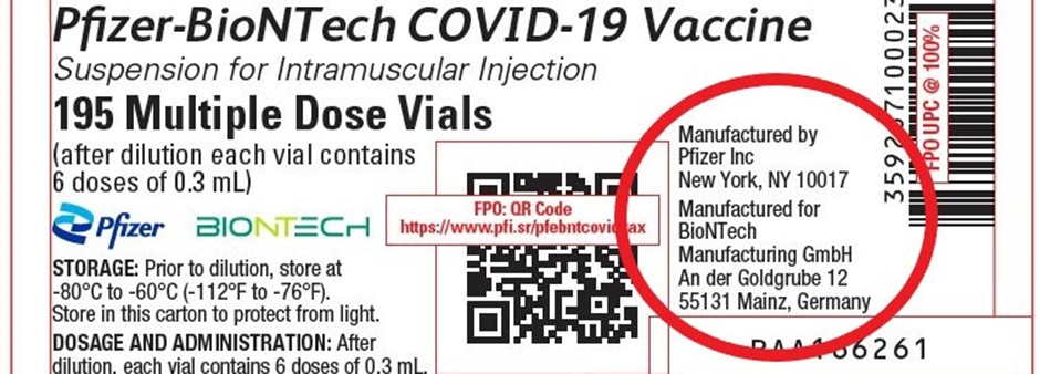 It needs to be stressed that the manufacturer here is precisely the German firm BioNTech. BioNTech, not its more well-known American partner Pfizer, is legally the manufacturer of the so-called Pfizer-BioNTech vaccine. Pfizer is a contractor which undertakes (some) manufacturing activities on BioNTech’s behalf. This is invariably indicated on the very label of the vaccine. (See below, for instance, and for more examples and a discussion here.)