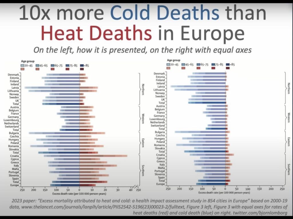 “very clear that excess deaths due to heat greatly exceed excess deaths due to cold” – you mean the opposite, of course!