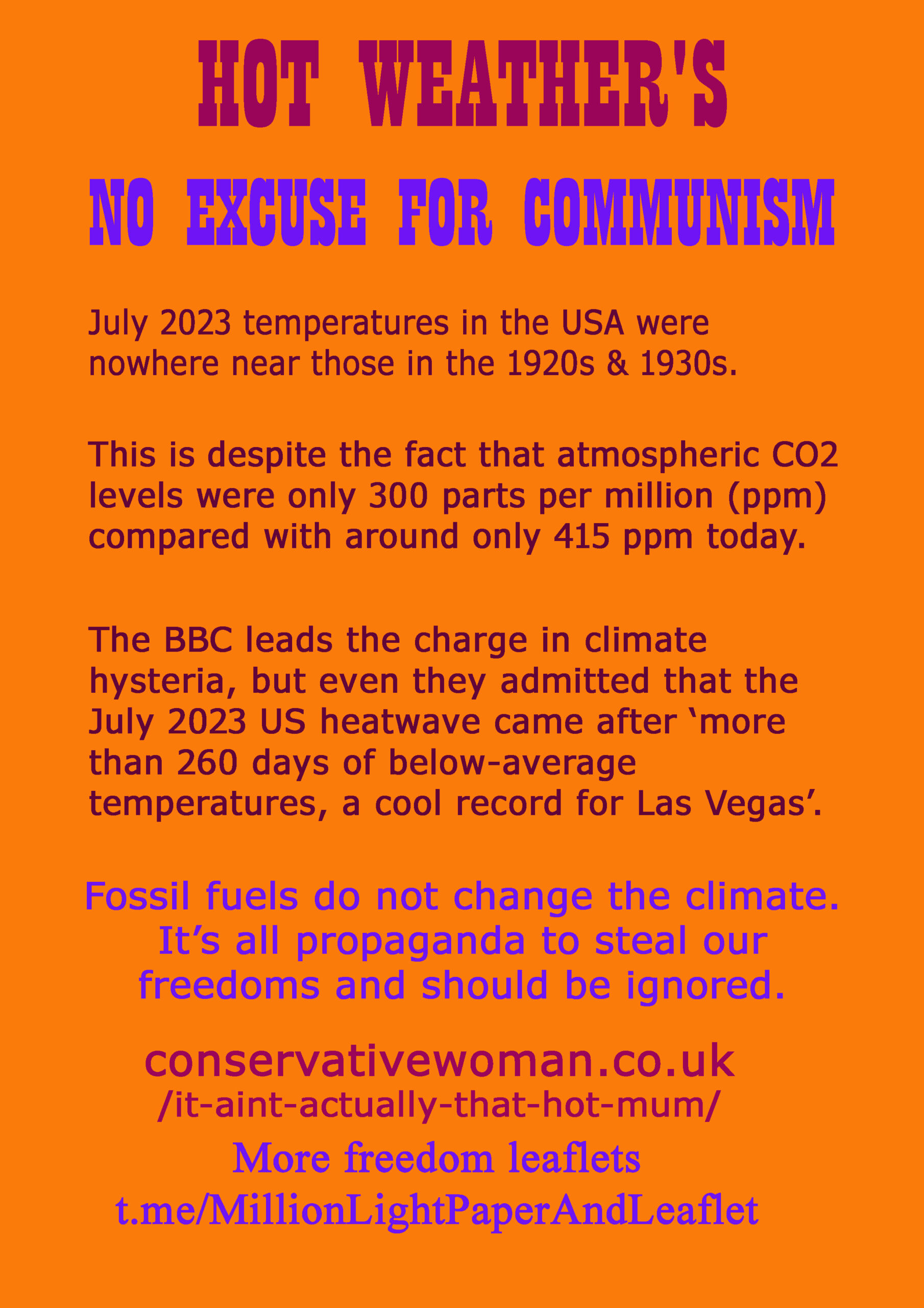 About half the population at the moment. It is easier to join the dots on this, whereas Covid took a bit more effort to see. The more hysterical they get, the more ridiculous it all sounds. I think the Head of the UN has done us a tremendous favour by introducing ‘Global Boiling’…