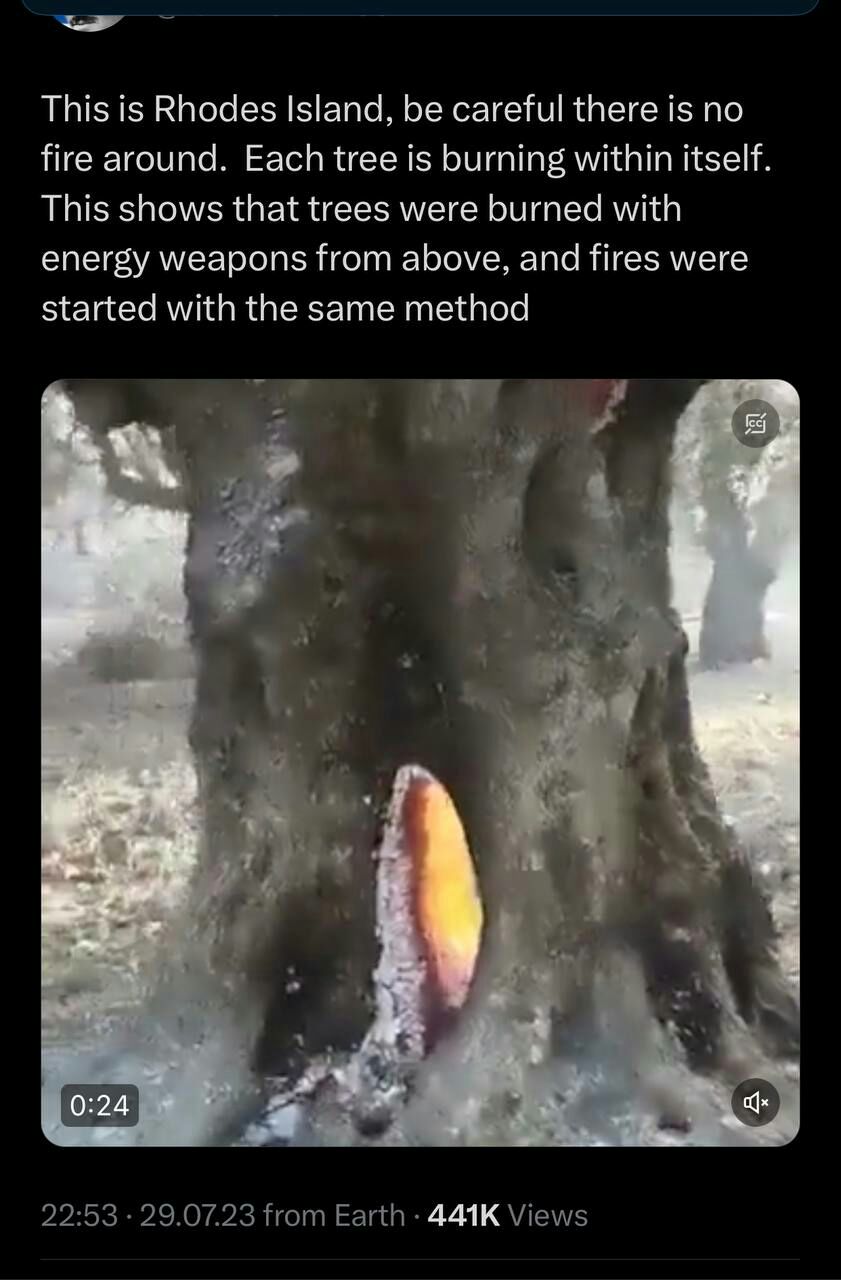 Maybe look at this.. exactly the same happening as in the Californian fires, and the neat line of fire across Rhodes island more or less confirms it.. DEW’s Directed Energy Weapons..