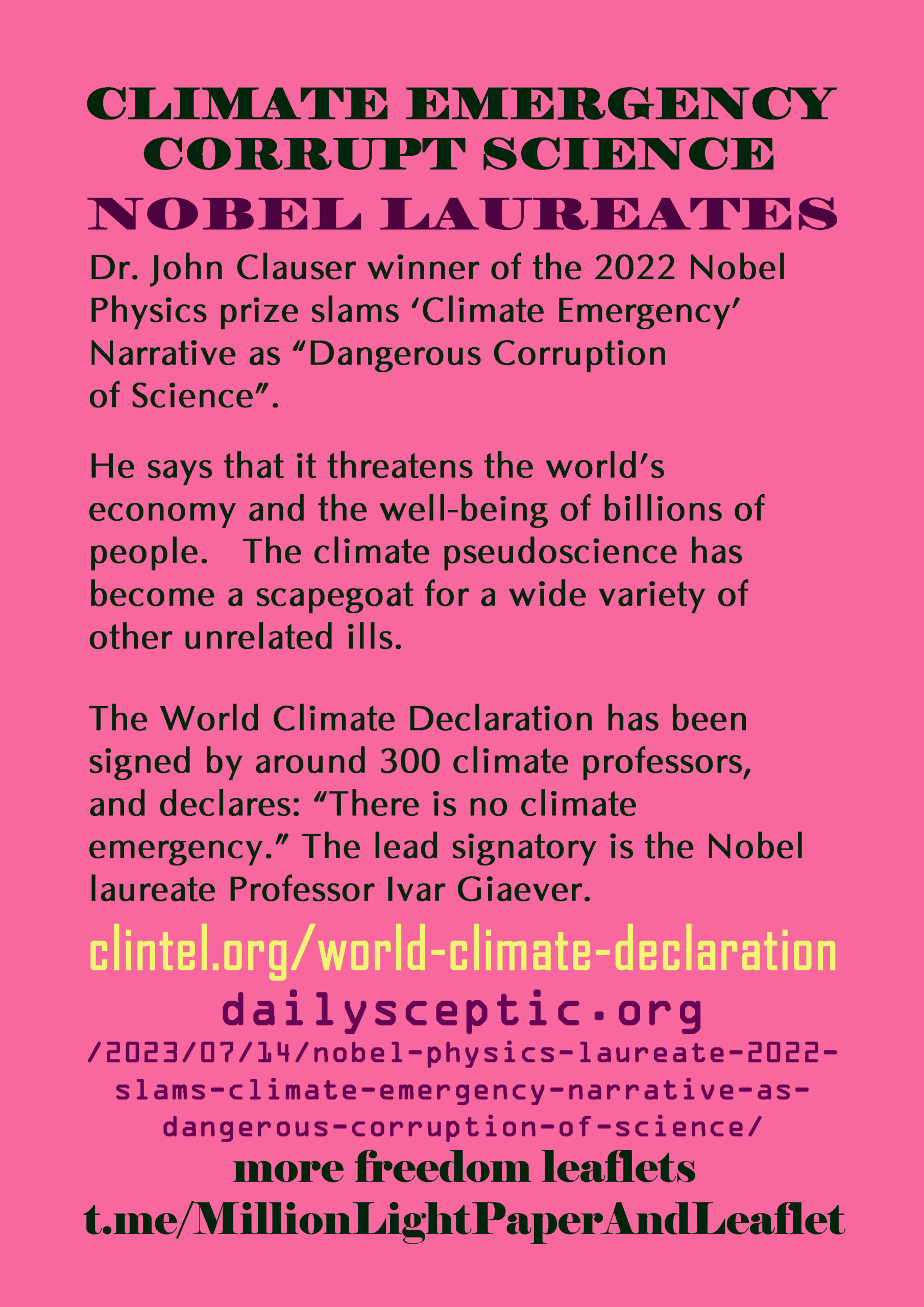 The Joint Winner of the 2022 Nobel Prize for Physics, Dr. John F. Clauser, Dared to Say There is No Climate Crisis – Now He’s Being Cancelled