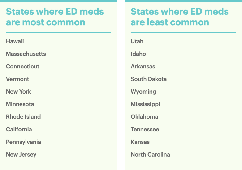 Northeastern states like Maine, Vermont and New Hampshire have relatively high median ages. ED is typically more common in older men.