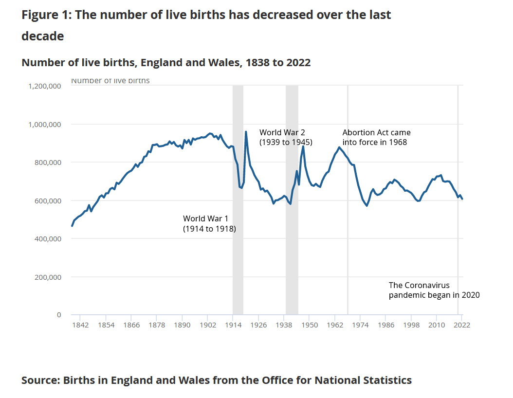 This is the ONS chart showing live births, note this doesn’t adjust for female population size in childbearing ages