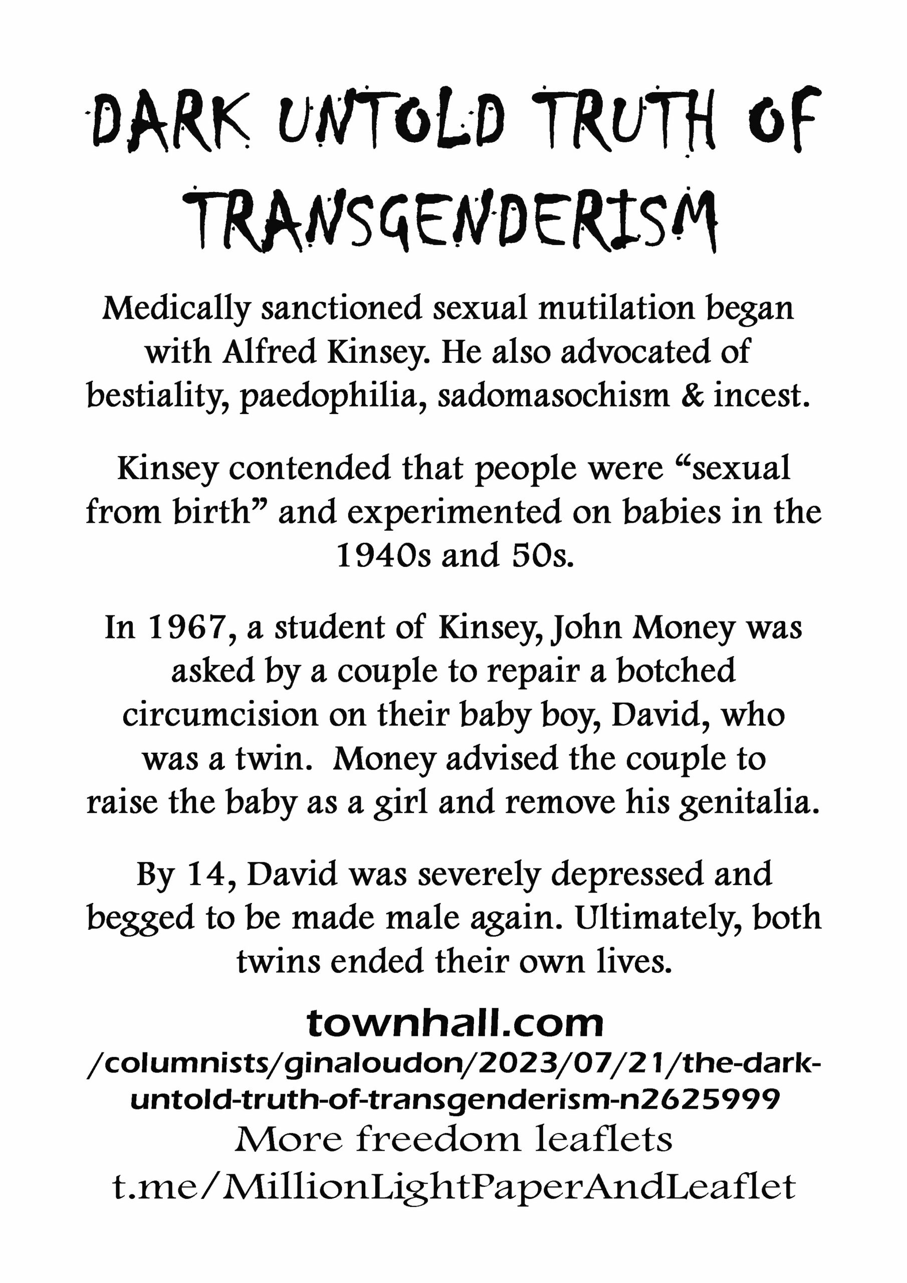 Aside from ever greater control of large corporations through manipulating stock market prices relative to ESG scores, I’ve assumed that it’s the classic ‘divide and conquer’ combined with keeping the unwashed masses in a state of permanent confusion and despair, thus less likely to resist and retaliate. Create and emphasise difference to foment suspicion and ill-will where none previously existed – biology, ‘gender’ (whatever the hell that is these days), race, belief systems, etc – and aim to destroy anything that was previously considered ‘normal’. Manipulate and weaponise language to veritable Tower of Babel levels so no one knows what anyone else is saying or can say any more plus censor anything that might question The Narrative™. Gain control of food, food supplies and healthcare so that the deliberate perversion of one leads to an increasing dependence on the other. Blatantly override existing legislation with paper-thin ideologies and lies by throwing logic, facts, history and common sense out of the window – and above all, make sure you target the kids. If the occasional company takes a minor hit in the meantime (5% on a multibillion dollar turnover isn’t going to make much difference) then so be it, the plan… Read more »