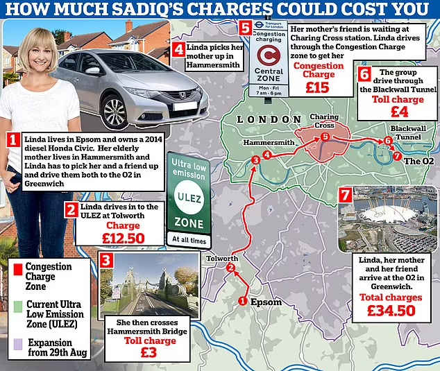 The Congestion Charge, introduced in 2003, was joined by Ulez in 2019. And later this month the Mayor will extend the scheme across every London borough – prompting critics to dub him ‘Highwayman Khan’.
