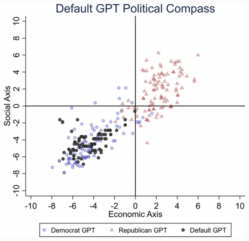 Fraser found that ChatGPT agrees with whichever party is mentioned first 81% of the time. So when he told it to answer as if it were a Republican before answering as if it were a Democrat, it came out as biased toward the Republicans.