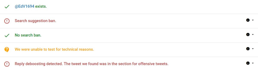 At the time, under the old Twitter regime, being shadow-banned was still a kind of status, which could be easily and accurately verified by online shadow-ban tests (or even by users themselves by searching for their own tweets when logged out of their accounts).