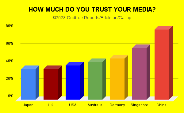 Controlling information through intimidation and explicit controls saps government credibility and makes rumors spread more readily, thus creating ever more work for busy censors. Media Control in China, He Qinglian. He Qinglian’s censorial officedates back to Tang times. The Chief Censor is responsible for making Chinese media a consistently reliable source of information so, in case of an epidemic or a war, everyone can trust what they’re being told. Chinese media provided consistently reliable Covid information so everyone followed it and only 80,000 of them died – even though only 7% of them were ever locked down. They also kept the economy turning over nicely during the drama: GDP grew 14% in those three years. With no trustworthy information sources, we Wessies split up, got lost in thickets of misinformation, and 1.2 million didn’t make it. Friends fall down laughing when I tell them that the current dynasty has never lied nor failed to keep a promise (though so far none has claimed the prize of $100/occurrence). Here’s a funny thing: when I tell Chinese friends that I’ve never found the government lying or welching on a promise they look at me oddly. Eventually they say something like, “But, um,… Read more »