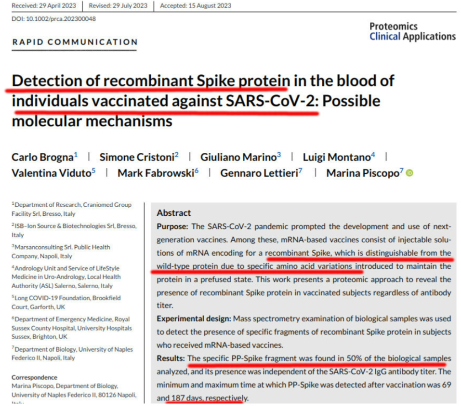 A clever scientific study by Brogna et al., just published, detected the presence of spike protein in Covid-vaccinated people six months after vaccination – and excluded the possibility of cross-contamination of experimental data with wild-circulating Covid infections.