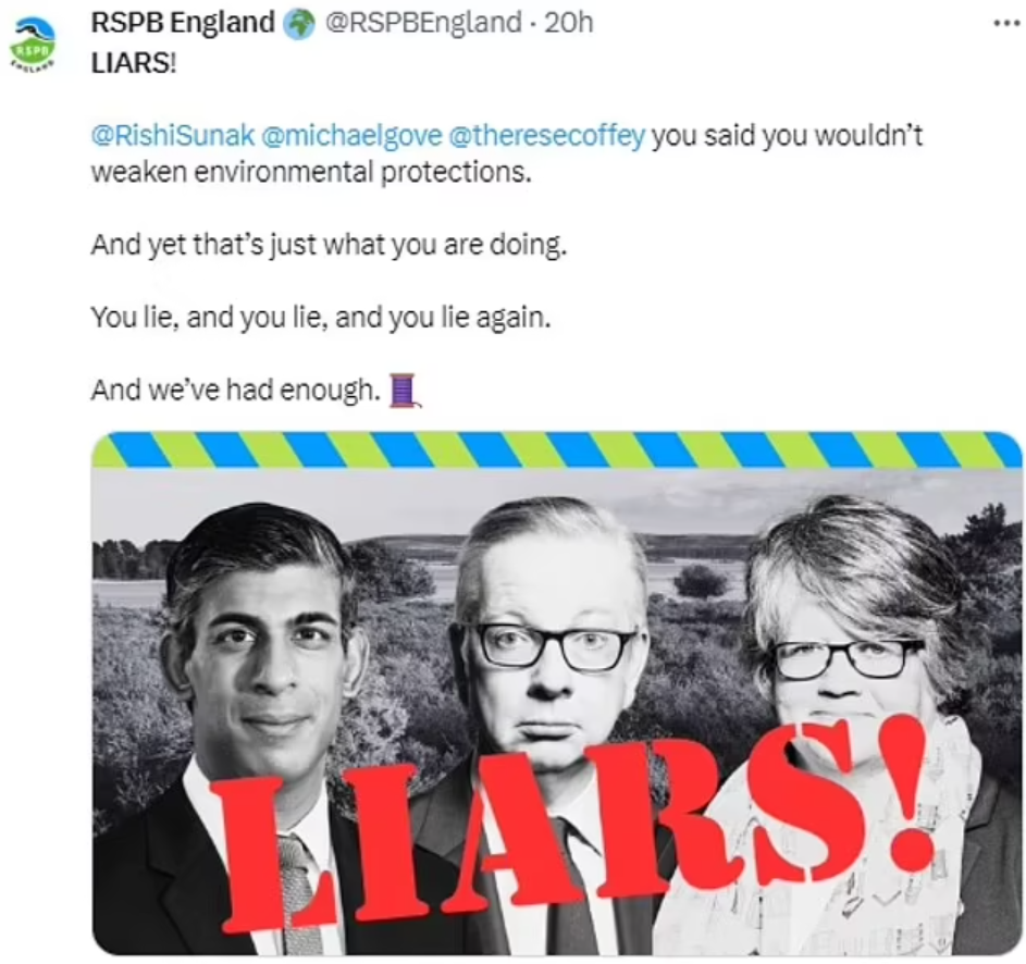 The controversial political intervention by the RSPB this week via its X account – branding Government Ministers “LIARS!” – is the result of the takeover of the bird charity by a cabal of hard-Left activists, says Guy Adams in the Mail. Here’s an excerpt.