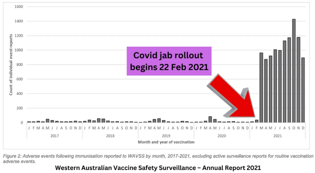 The true extent of Covid vaccine harm in Australia is as yet unknown. Vaccine safety surveillance data from the ‘control group’ of Western Australia (WA) during 2021, when the state had blanket vaccination but almost no Covid, suggests that it’s worse than the TGA safety reports indicate.