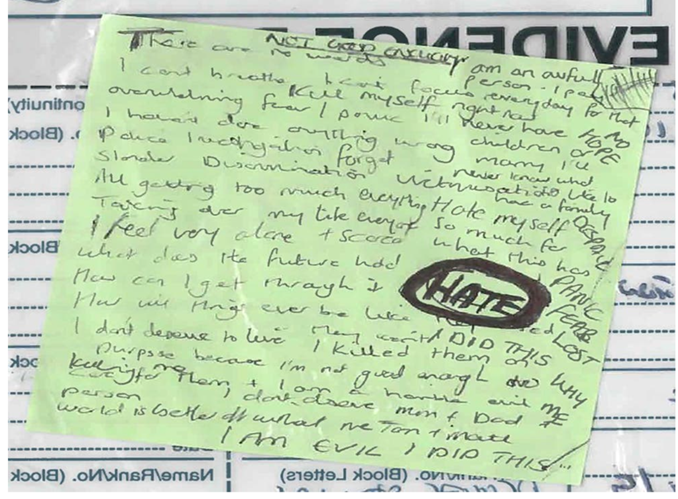 Dr. Evans’s analysis was one major factor in Letby’s conviction. The other was her own notes, most notoriously one on green paper (figure 2). This includes the much-quoted phrases: “I killed them on purpose because I’m not good enough to care for them”, “I’m a horrible evil person” and “I am evil, I did this”.