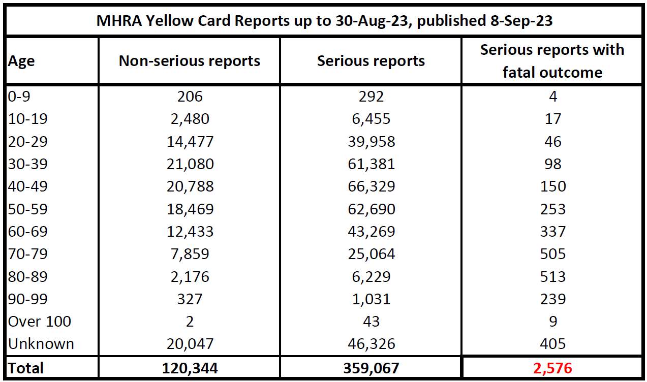 I have attached the latest MHRA figures summarised by age group. More details https://t.me/mikes_stuff/1294.