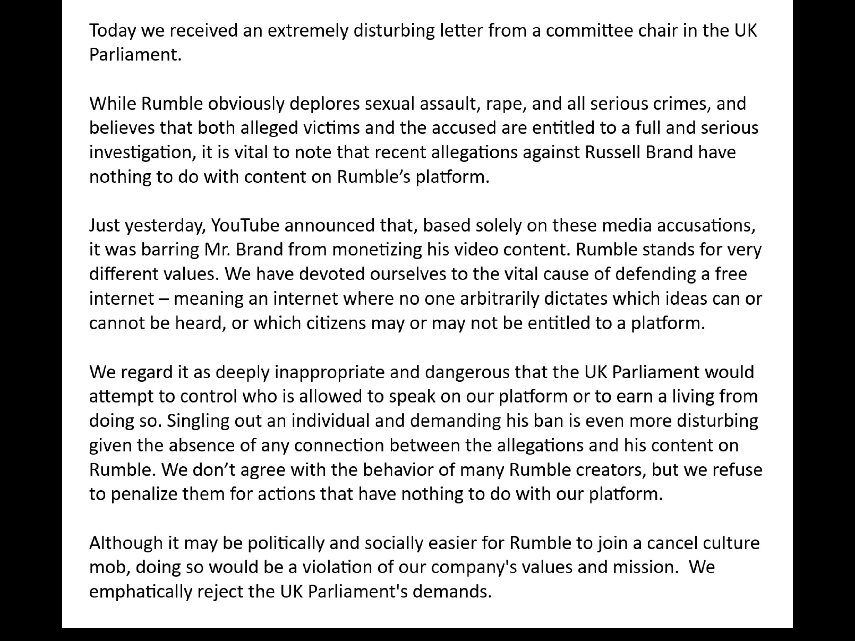 Thank Mogs, my thoughts exactly. What is deeply impressive is the tone of the response from Rumble – a loud and proud F. Off to the British Government and damned right too.