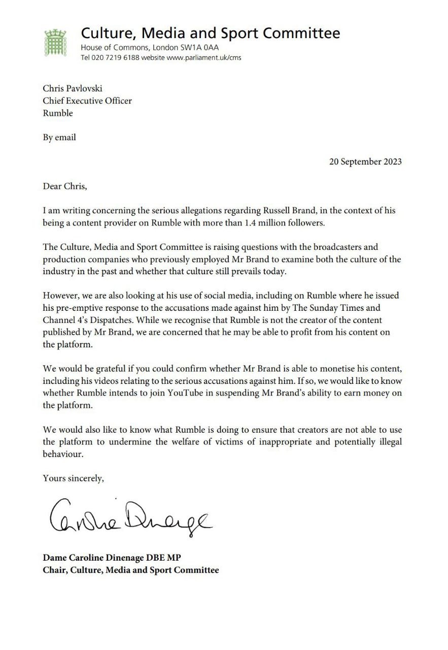 Wow..this one is to GB News..I actually think this is quite threatening…. Notice that only GB News is the impartial one, as usual… …this entire thing is looking more and more like a set-up….. Angelos Frangopoulos Chief Executive Officer GB News By email 19 September 2023 Dear Angelos, As you will be aware, the Culture, Media and Sport Select Committee has been looking at issues of behaviour in the media following a number of accusations against individuals and concerns about institutional culture. In July this year we wrote to the editor of The Sun regarding serious accusations made against Dan Wootton. The newspaper responded by setting out its ongoing investigation into his alleged behaviour. The following month DMG Media, as the publisher of MailOnline, announced Mr Wootton has been suspended as a columnist while its own investigations are ongoing. Since then, we are aware that Mr Wootton continues to broadcast on GB News, and indeed discussed the accusations against him during a broadcast on the channel on 19 July 2023. It is vital that viewers have faith in the media especially in the case of news brands, where truthfulness and accuracy are key. It is also vital that those working… Read more »