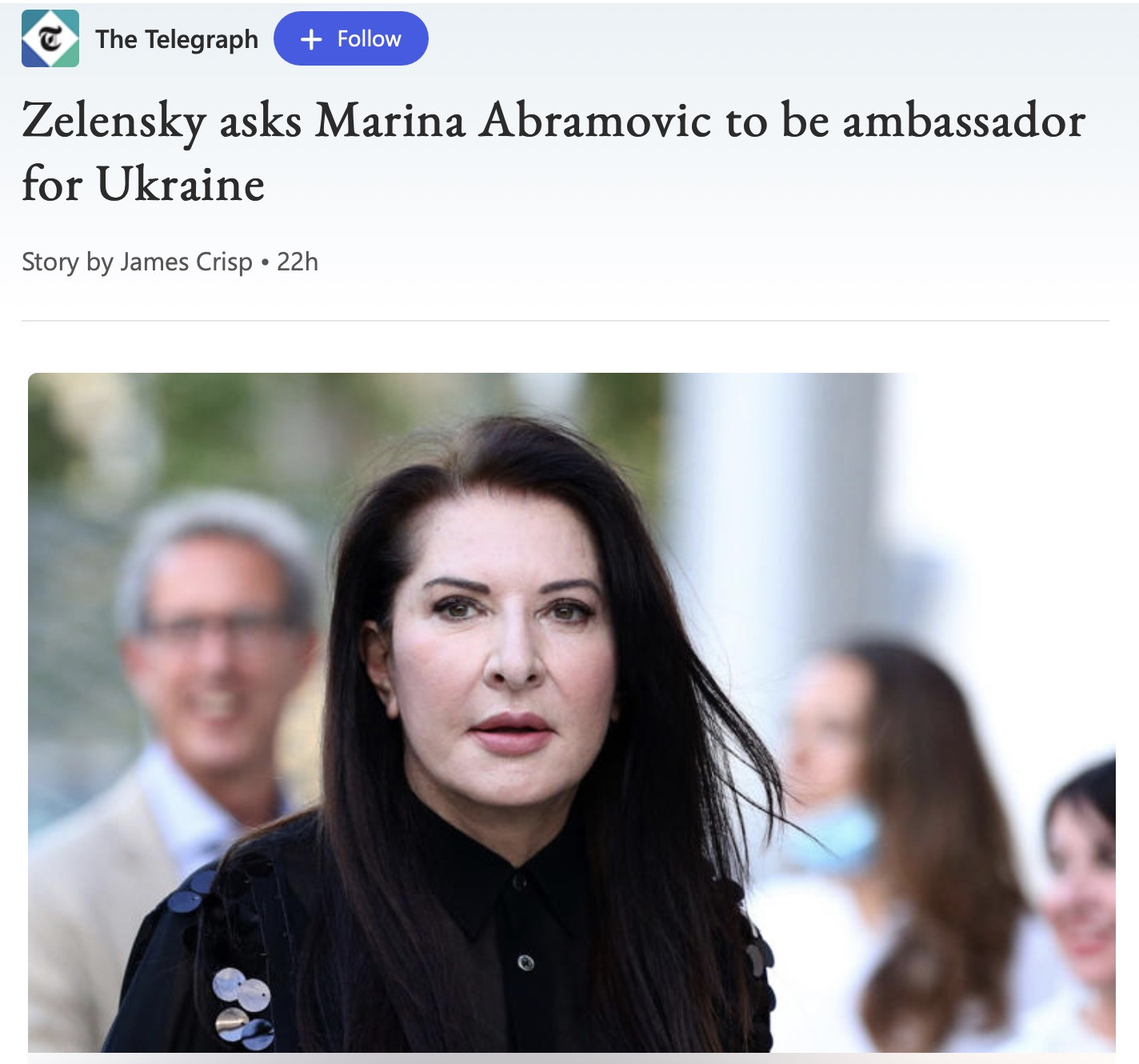My assumption is the parliamentarians did not know. Twitter did though, and very quickly. I also suspect Trudeau did. But that’s probably based more on my dislike for the little tyrant than any actual intelligence data. There are some very strange things going on. This whole Zelenski appointment of Marina Abramovic as an ambassador is more than a little weird.